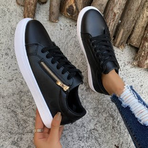 Women's Versatile Leather Side Zipper Casual Sports Shoes
