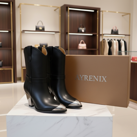 Women's Buckle Side Zipper Color Matching Cowhide Ankle Boots